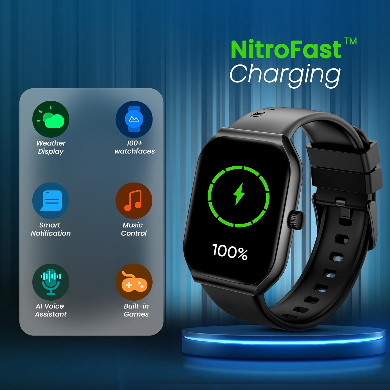- Advanced 110+ Sports Modes, 200+ Watchfaces, In Built Games, AI Voice Assistant and many more handy features at a single tap; Health Monitoring with Auto Stress monitor, 24x7 Heart Rate, Sleep Tracker, Spo2 and Women's Health